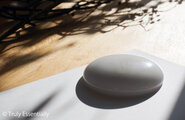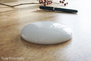 「 いる・ある・きえる 」シリーズ、純白ガラスのインテリアオブジェ ● 直径10.5 x 高さ2(cm)