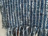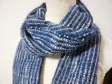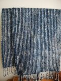 経糸に草木染の変わり糸と綿糸と真綿糸を使い、横糸は藍色のモヘアを使っています。。