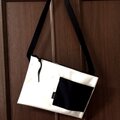 表の黒はポケットになっていて小物入れに。ふちなどは黒革で縁取りしています。