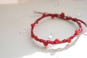美しいレッドカラーに染められたジェード(天然クォーツァイト)と柘榴の紐色で編んだ細身のかわいいブレスレットです。