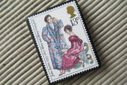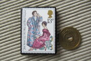 イギリス 童話(絵本)切手ブローチ 6686クリスマス切手ひとつでもお国柄を感じます。アクセサリーに変容した文化を楽しみたいと思います。