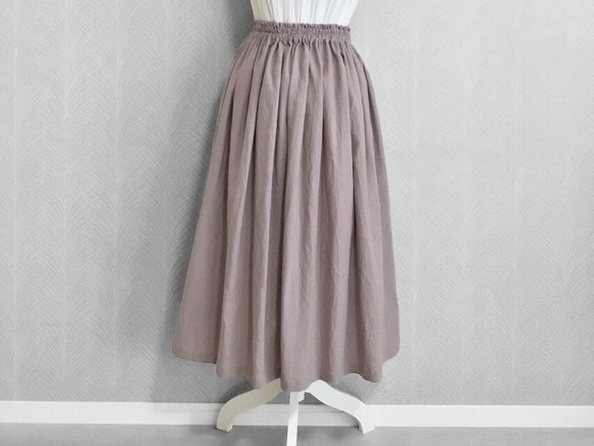 コットンリネン(グレイッシュピンク) ◇ワッシャー加工 ギャザースカート ハーフリネン 綿麻