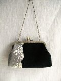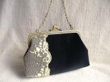 艶やかな黒ビロードにアンティークレースをのせたがま口バッグ