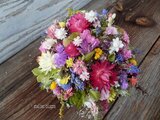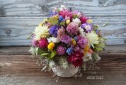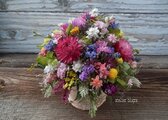 使用材料 キンポウジュ、貝細工、千鳥草、スターチス、オレガノ、センニチコウ、アンモビウム、米なずななど。