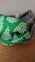緑の生地は綿100%、ベージュ生地はリネンコットンです。