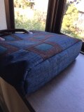 紬に帯地はめ込み手提げ丸い木の手と同じ生地を使っています。