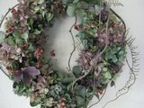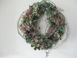 ミナズキと紫陽花のグラデーションが優しい、オーバルリースをお作りしました。