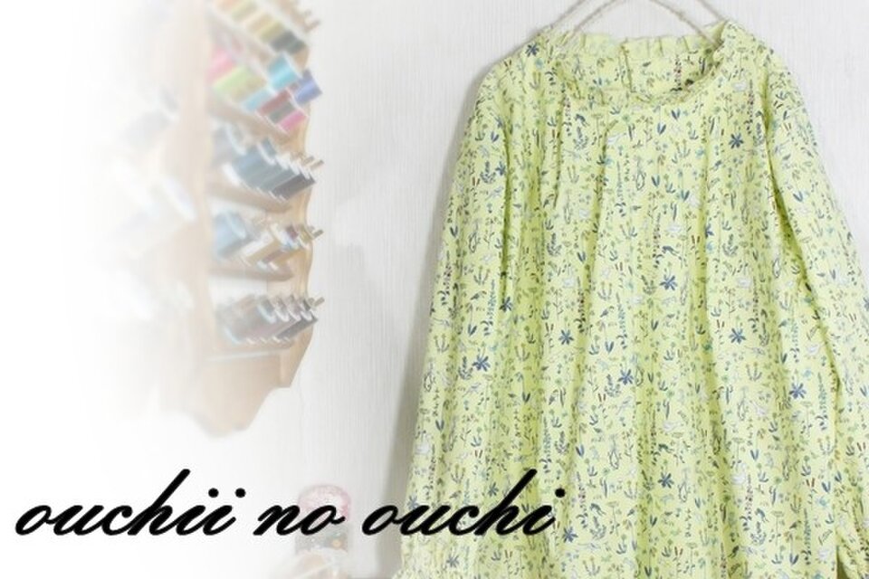リバティコットンTheo セオ レモンイエロー系で巻きロック仕上げのフリル襟ブラウスを作りました。