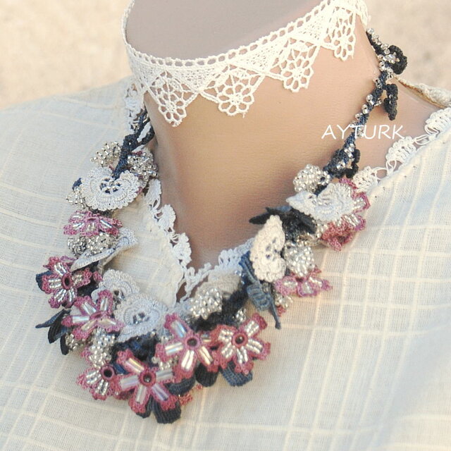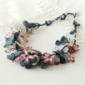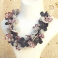 レース&ビーズのネックレス「ビジュー」グレー&パープル