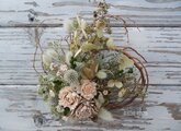 使用花材 ウツギ、晒しシーダーローズ、瑠璃玉アザミ、ラグラスバニーテール、米なずな、アジサイ、スターフラワーなど。