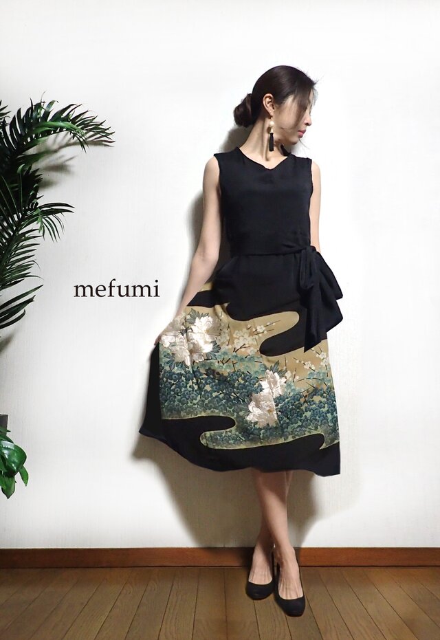 受注制作 ✳︎1点物 ✳︎ アンティーク 着物リメイク 青梅 フォーマルワンピース ✳︎ サイズ 9号/11号/13号
