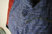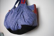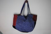 サイドに革を付けました。前面と後面にはびっしり刺し子を刺してあります。