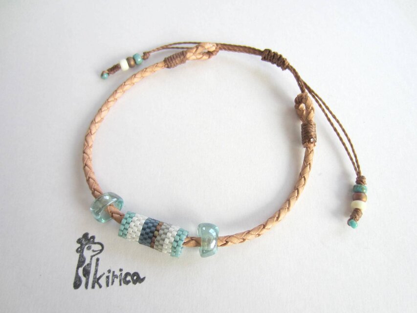 素材(ガラスビーズ、四つ打ち革紐3mm、ポリエステル紐)(564)