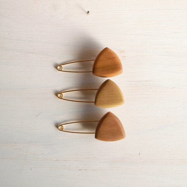 木を三角に削ってストールピンを作りました。