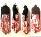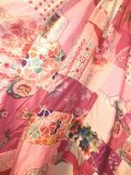 ピンク・白系銘仙色々パッチワークイレギュラーヘムギャザースカートです。