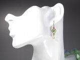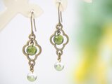 お花のメタルフレームに ゆらゆら揺れるガラス粒が ぶら下がったピアスです