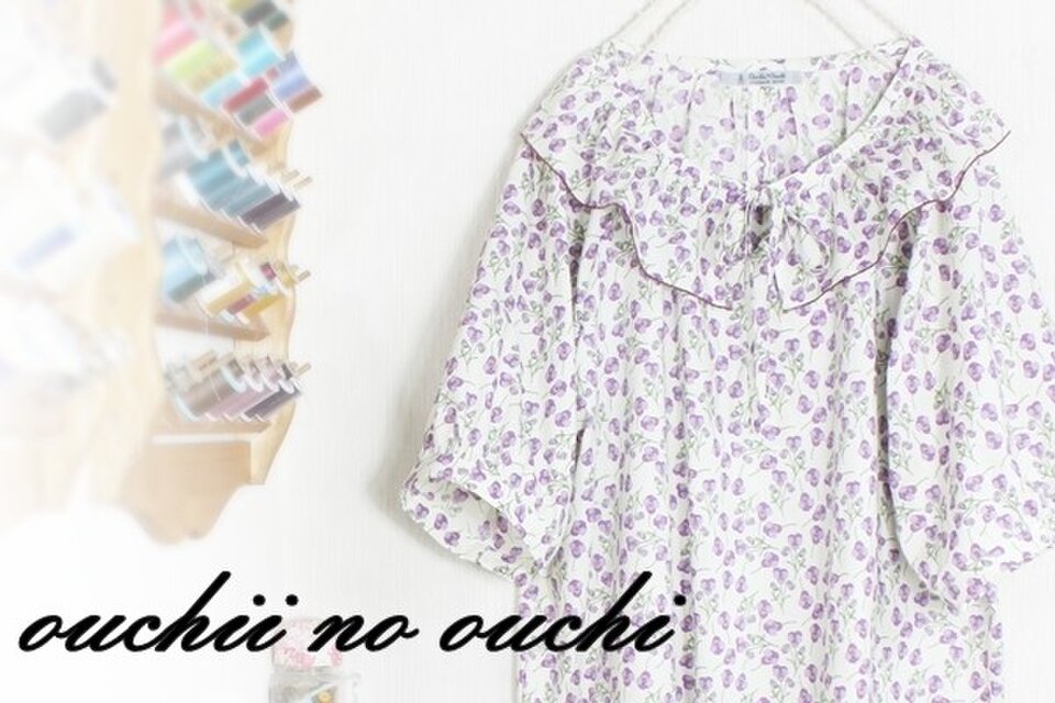 リバティタナローン人気柄 Ros ロスで巻きロック仕上げのフリル襟リボンラグランブラウスを作りました。
