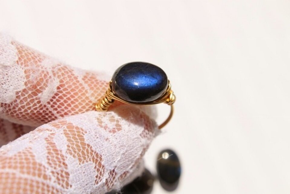 希少!宝石質 ブラック ラブラドライト Wire Ring