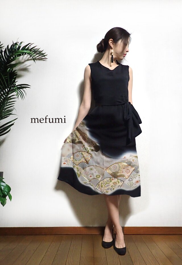受注制作 ✳︎1点物 ✳︎ アンティーク 着物リメイク 扇 フォーマルワンピース ✳︎ サイズ 9号/11号/13号