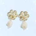 耳元にパールやゴールド、そしてホワイトリーフが揺れて上品な感じが素敵!!