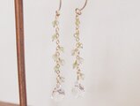ドロップカットのクリスタルクォーツをメインにプレナイト、ペリドットを組み合わせたピアス。