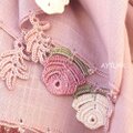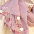 大判のストールの上下に優しく、かわいく薔薇が揺れるデザイン、