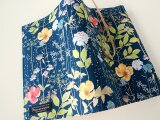リバティの人気生地、イルマ Irma(ネイビー)とハーフリネンの生地でビジネス書サイズのブックカバーを作りました。