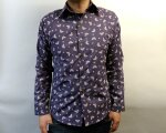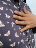 綿ポリの薄手の生地に蝶と桜が描かれた粋なシャツ
