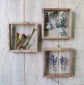 アンティーク調に仕上げた自家製フレームにドライフラワーやプリザーブドフラワーなどをはめこみました。