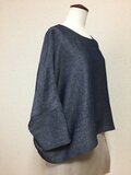 デニムのように見える織りの上質なシャンブレーリネン(ダークネイビー×オフ白)のシンプルなドルマン風ブラウスになります。リネン特有のさらっと感と肌触りの優しい柔らかな生地です。生地の厚みはやや薄手で軽く、透け感はありません。たっぷりな身幅がさらに着心地のいいブラウスです。