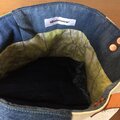 (紙のオリジナルタグを付けた状態で、私物のデニムを入れて撮影しています。内布は同じ柄です。)
