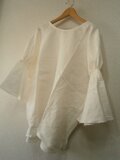 en-enリネン・ギャザー絞りフレアー袖・オフホワイト(新作、人気、麻)
