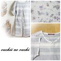 春にピッタリなしっとりリネン 先染めボーダーグレーベースの白ラインとリバティタナローンでドルマンプルオーバーブラウスをおつくりしました。