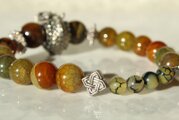 グラウンディングの石で、精神、肉体、知性面のバランスをもたらします。和らげ、落ち着かせる石で、作用はゆっくりとしていますが、非常に強力です。身体エネルギーのセンタリングと安定化を助けます。大地のエネルギーを受け継ぐ石で、日頃から仕事や生活で動植物に関わっている人に功徳を与えます。農民にとっては豊作を、その他の人々には長寿と富、健康をもたらすと言われています。身につけた者に、心の豊かさと安心、感謝の気持ちを育みます。自己受容をおだやかに促進し、それによって自信をもたせます。集中力や知覚力、分析力を向上させながら精神面の機能を強化し、現実的な解決策へ導きます。誠実性を好む石なので、自分の真実を語るように促します。 ネガティブな要素や心の痛みを克服します。内なる怒りを癒し、愛とやり直す勇気を育むので、あらゆる種類の情緒的トラウマに有用です。内面の緊張を解きほぐすことによって、安全感と安心感をもたらします。ファイヤーアゲートは、進歩的発展おより良い未来へと導いてくれます。未来への知恵を借りたいときは、ファイアーが手助けしてくれます。水入り瑪瑙は、癒しと健康、長寿をもたらす他、古代の水のエネルギーがイマジネーションを刺激します。