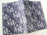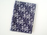 リバティの人気生地、Capel カペル(ネイビー)のラミネート生地(つや無)でA5サイズのノートカバーを作りました。