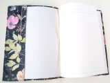 リバティの人気生地、イルマ Irma(ブラック)のラミネート生地(つや無)でA5サイズのノートカバーを作りました。