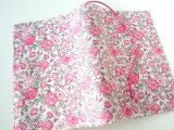 リバティの人気生地、フェリシテ Felicite(レッドピンク)のラミネート生地(つや無)でA5サイズのノートカバーを作りました。