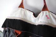 「Randers Tanker」私はデンマークのRanders という所で地元の人たちと共同生活をしていたことがあります。その時、着古して穴のあいた服や靴下を捨てず、大切に繕って使っている人たちを見て、モノを大切にするのはとても気持ちの良い事だなぁと感じました。作品の根源的なアイディア(Tanker)がその土地Randers から生まれたという意味を込めて、ブランド名をつけました。 作品へのこだわりは、ほぼ全ての物を手縫いで作っている事です。作品一つ一つは決して完成されたシルエットの物ではない…