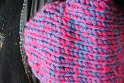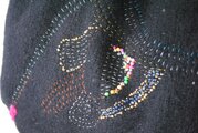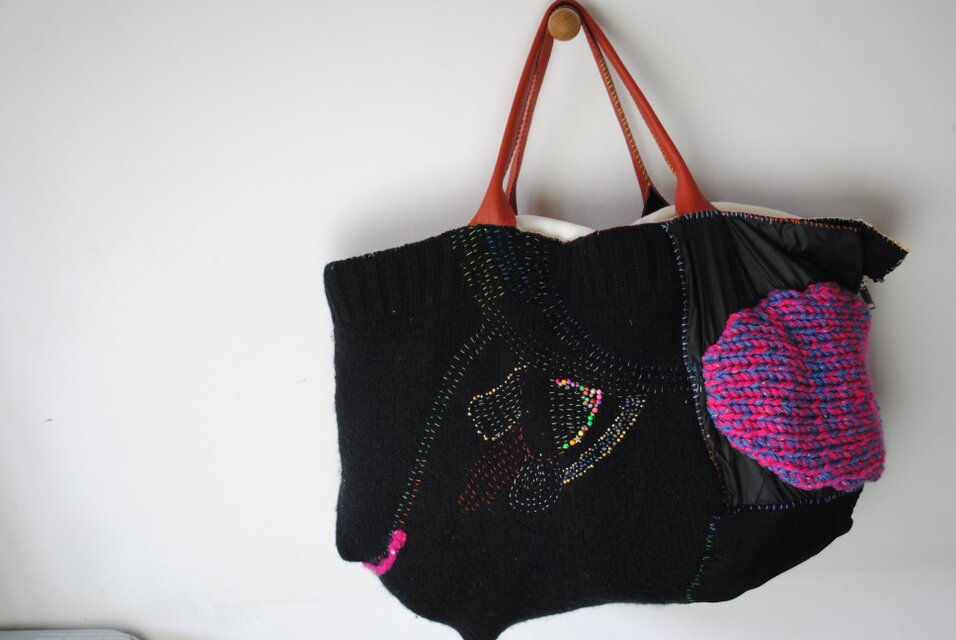黒の分厚いニット地にこれもざっくりに編んだニット地をパッチワークしました。