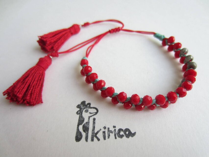 赤ボタンビーズのスライドブレスレット