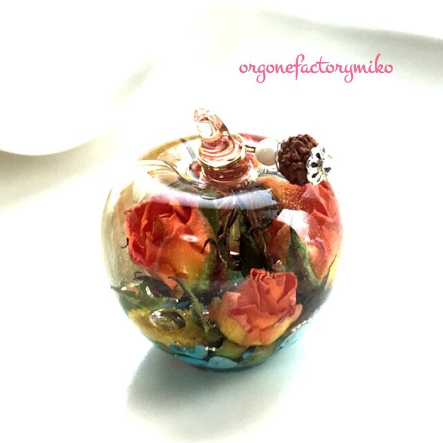 りんご 成功のお守り ターコイズ アマゾナイト ルドラクシャチャーム付き オルゴナイト