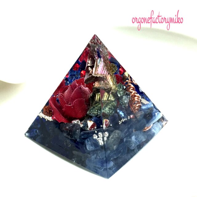 ビスマス人工石 ラピスラズリ&カイヤナイト 幸運 オルゴナイト ピラミッド