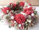 真っ赤なソラフラワーやセンニチコウ、ミナズキなどを集めてWreathを作ってみました。
