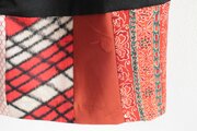 ・黒地に赤系の絹や銘仙などのパッチワーク(裾) シルク100%