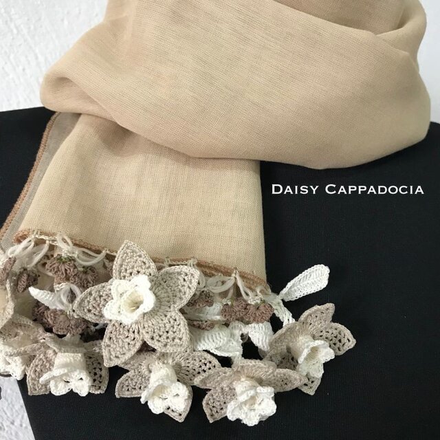 肌触りのよりコットンスカーフをシルクの花で飾りました。