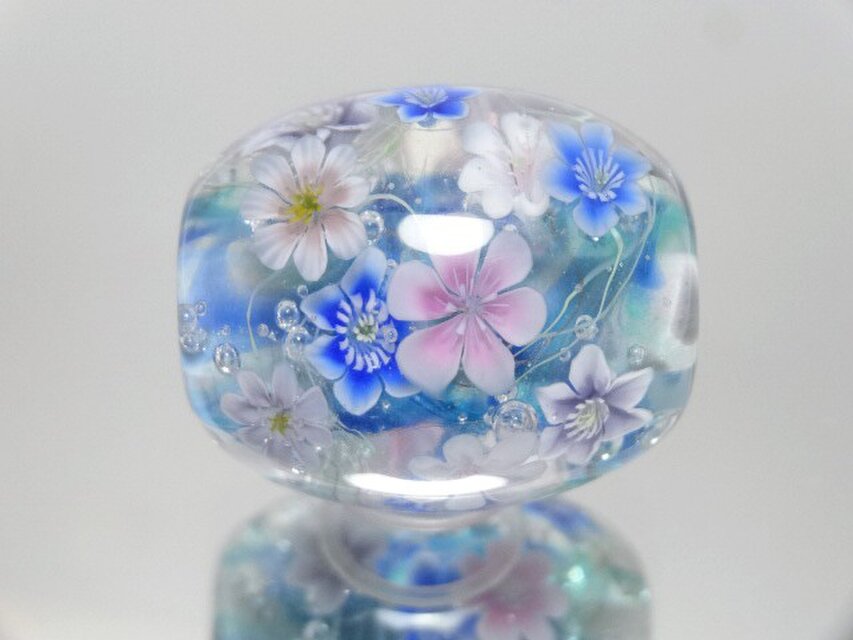 バーナーワークの技法で制作した、手作りのとんぼ玉です。
