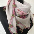 お花のレース付き ふんわりコットンスカーフ ライトピンク