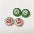 刺繍くるみボタンイヤリング【パステルグリーン×ライトグレー】