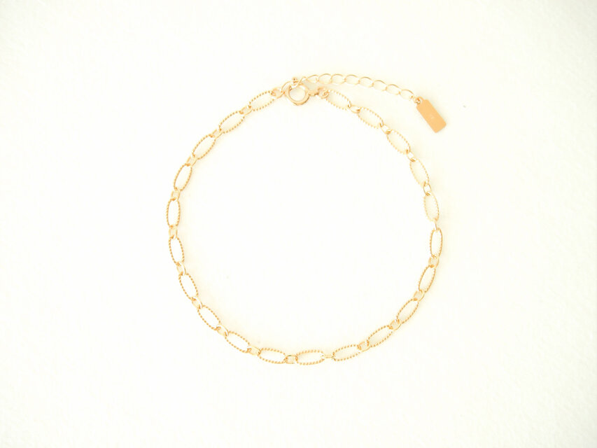 チェーンは大きめのオーバルと小さなオーバルのパーツが交互になっております。また大きめのチェーンにはテクスチャーがほどこされております。