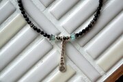 直径3mmの美しいブラックスピネルにカレンシルバーのトップを下げたネックレスです。
